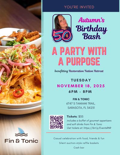 Join us as we celebrate Autumn's 50th Birthday in the best way possible—by giving back to a cause close to her heart: Restoration Nation Retreat.